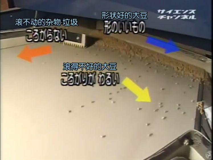其中比较有意思的是“大豆筛选机”,它可以筛除混在大豆里的杂物垃圾和形状不好的大豆。
